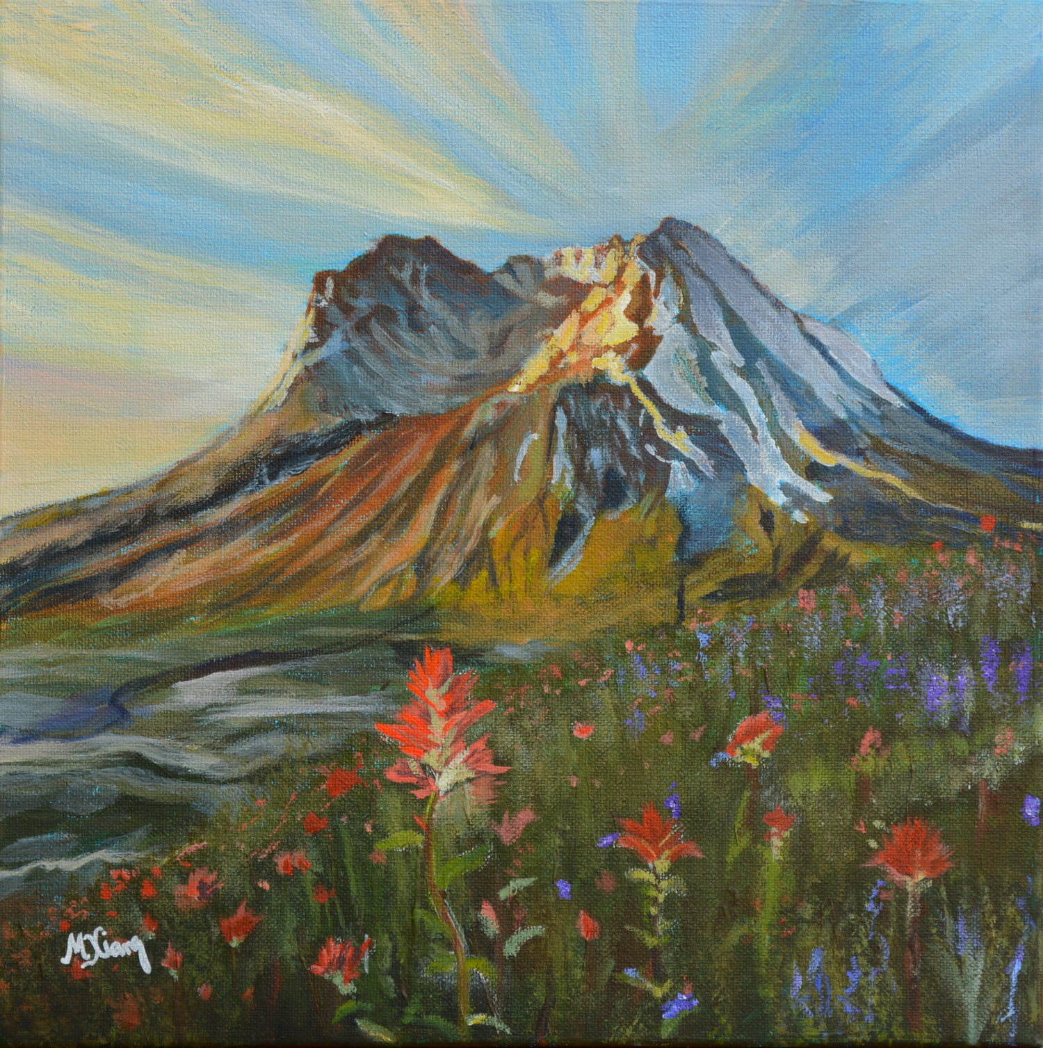 Mt. Rainier Wildflowers Sunset Giclee Fine Art Print | Mt. Rainier National Park Painting