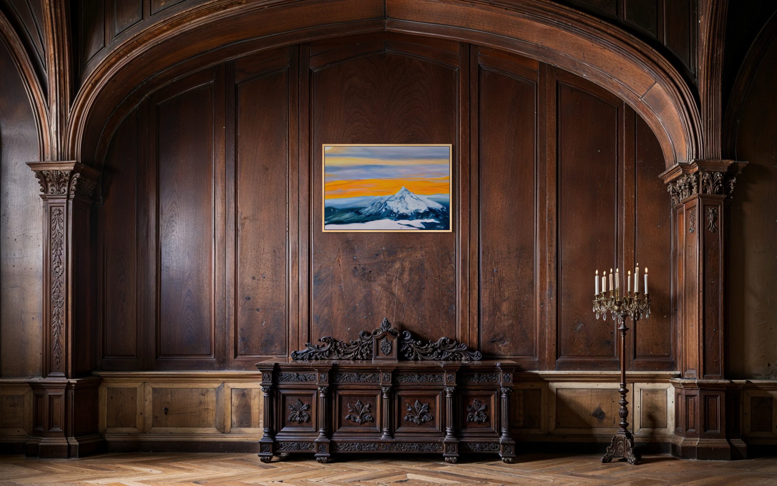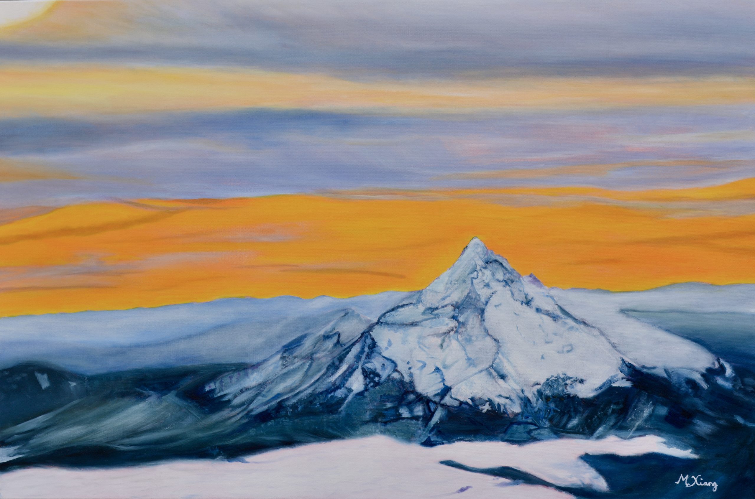 Original painting of Wy’East (Mt. Hood) sunrise as seen from above the Portland International Airport.